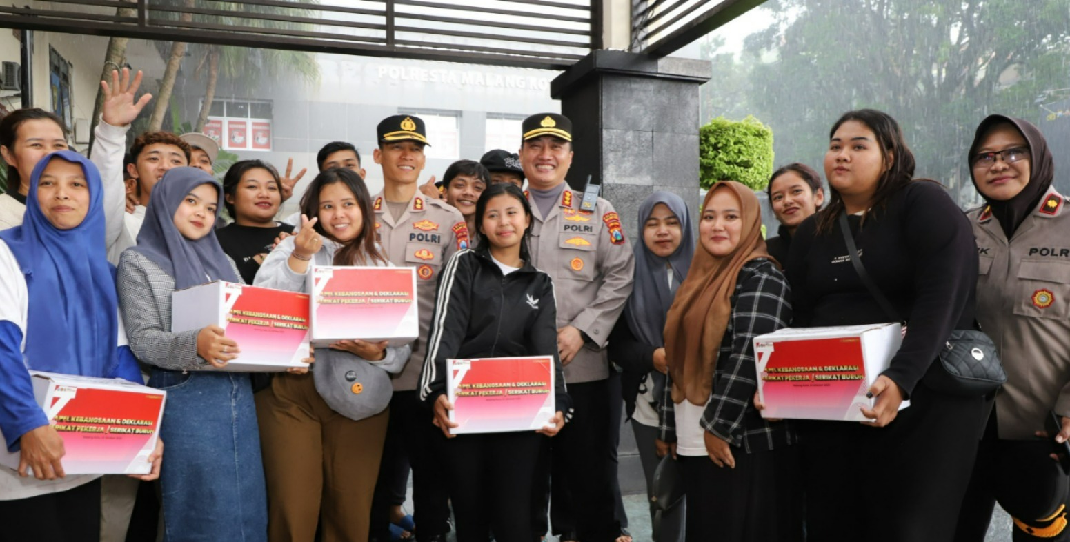 Kapolresta Malang Kota Bagikan 200 Paket Sembako untuk Serikat Buruh dalam Apel Akbar Kebangsaan